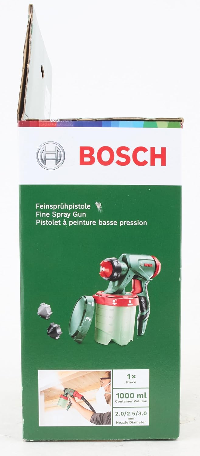 Articles inclus : pistolet PFS, gobelet de 1000 ml, couvercle, 3 buses, boîte en carton