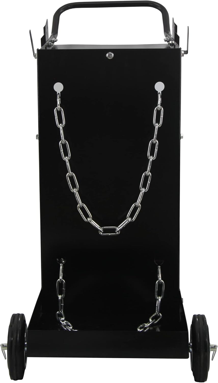 Chariot de soudage pour bouteilles de gaz et machine à souder. Chariot pour machine à souder avec construction métallique robuste. Fabriqué en acier de haute qualité pour résister à une charge maximale de 40 kg. L’étagère supérieure inclinée sur laquelle la machine à souder peut être placée permet un meilleur contrôle, tandis que les deux autres étagères offrent de la place pour l’équipement nécessaire. Le chariot de soudage est un châssis de transport léger conçu pour le transport d’équipements de soudage TIG, MIG, ARC ou plasma ainsi que pour une utilisation dans les ateliers. Ils sont livrés en kit à monter soi-même. Spécifications: Charge maximale :
