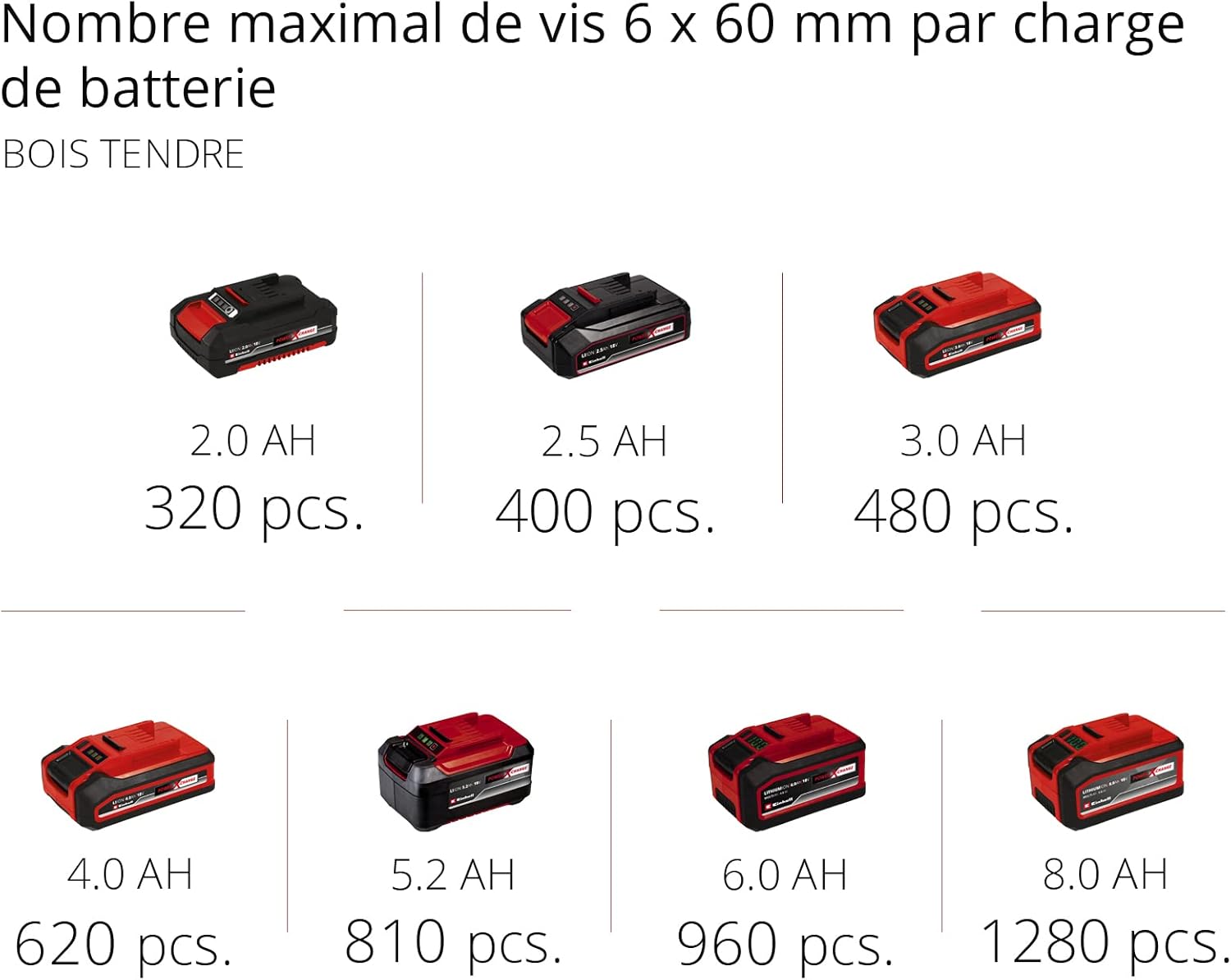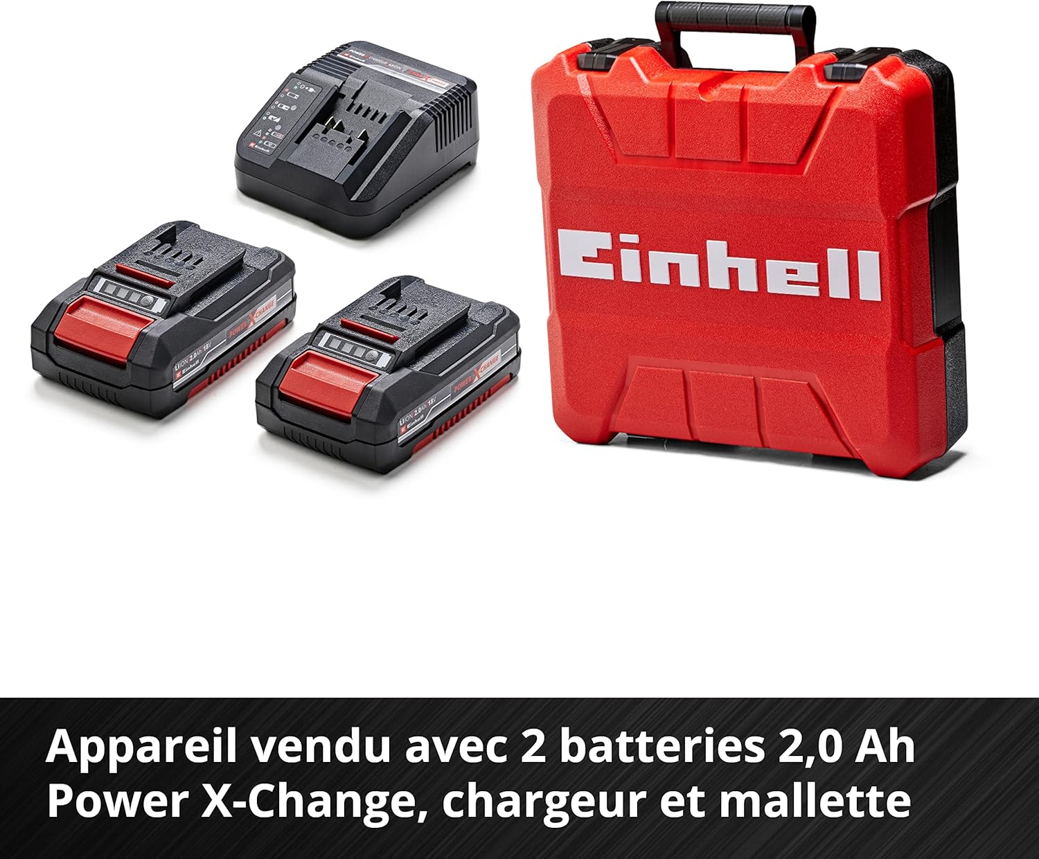 L’outil est vendu avec deux batteries lithium-ion 2 0 Ah Power X-Change Compatibles avec l’ensemble des appareils de la gamme Power X-Change celles-ci sont toujours prêtes à l’emploi sans aucun risque d’autodécharge Un chargeur rapide Power X-Change est également fourni