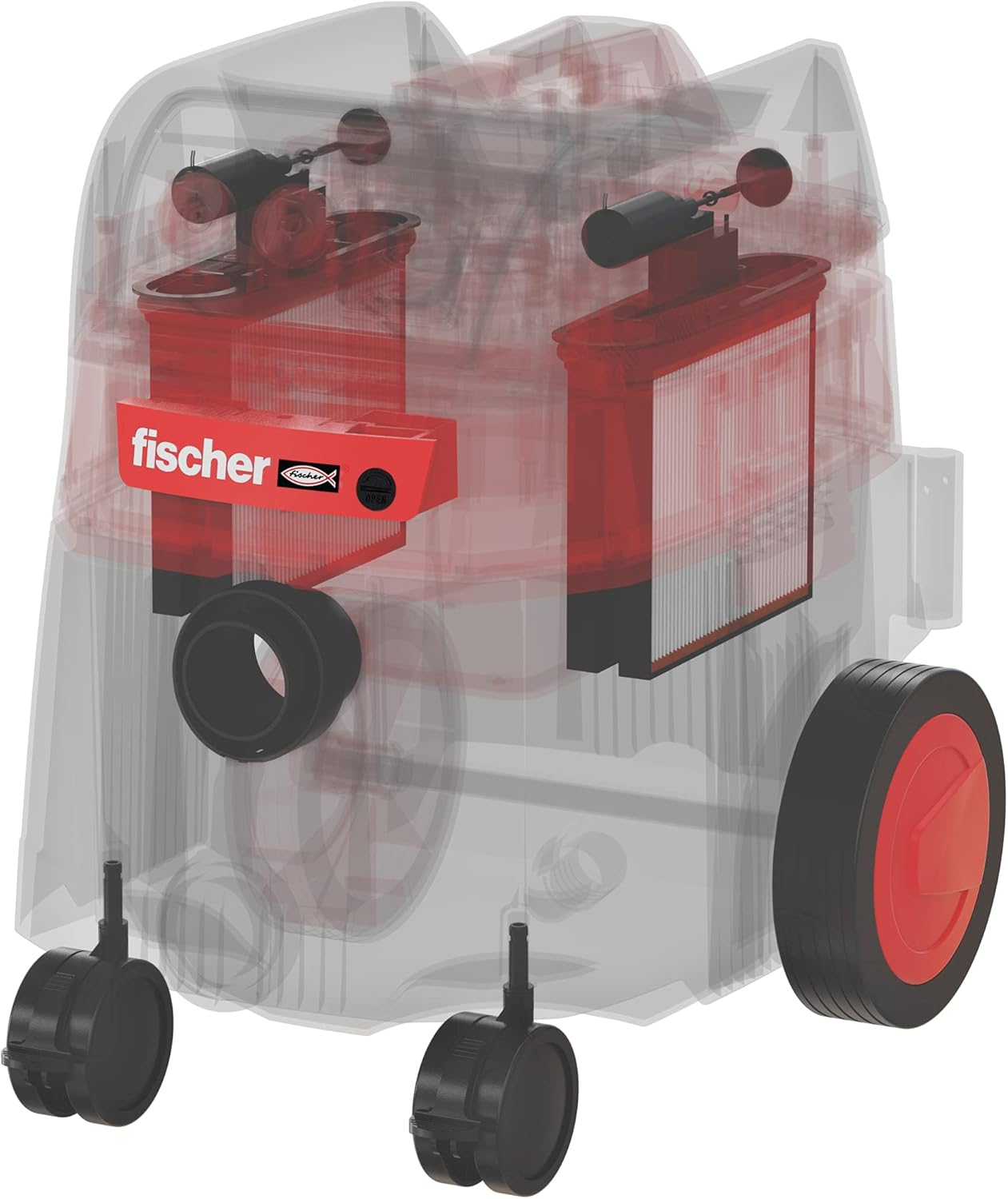 L’aspirateur eau et poussières FVC 35M de fischer est adapté pour l’aspiration de poussières dangereuses pour la santé, conformément à la classe de poussière M. Grâce au nettoyage automatique des filtres en mode aspiration, ceux-ci sont nettoyés sans interrompre le flux d’air, ce qui garantit un travail continu.