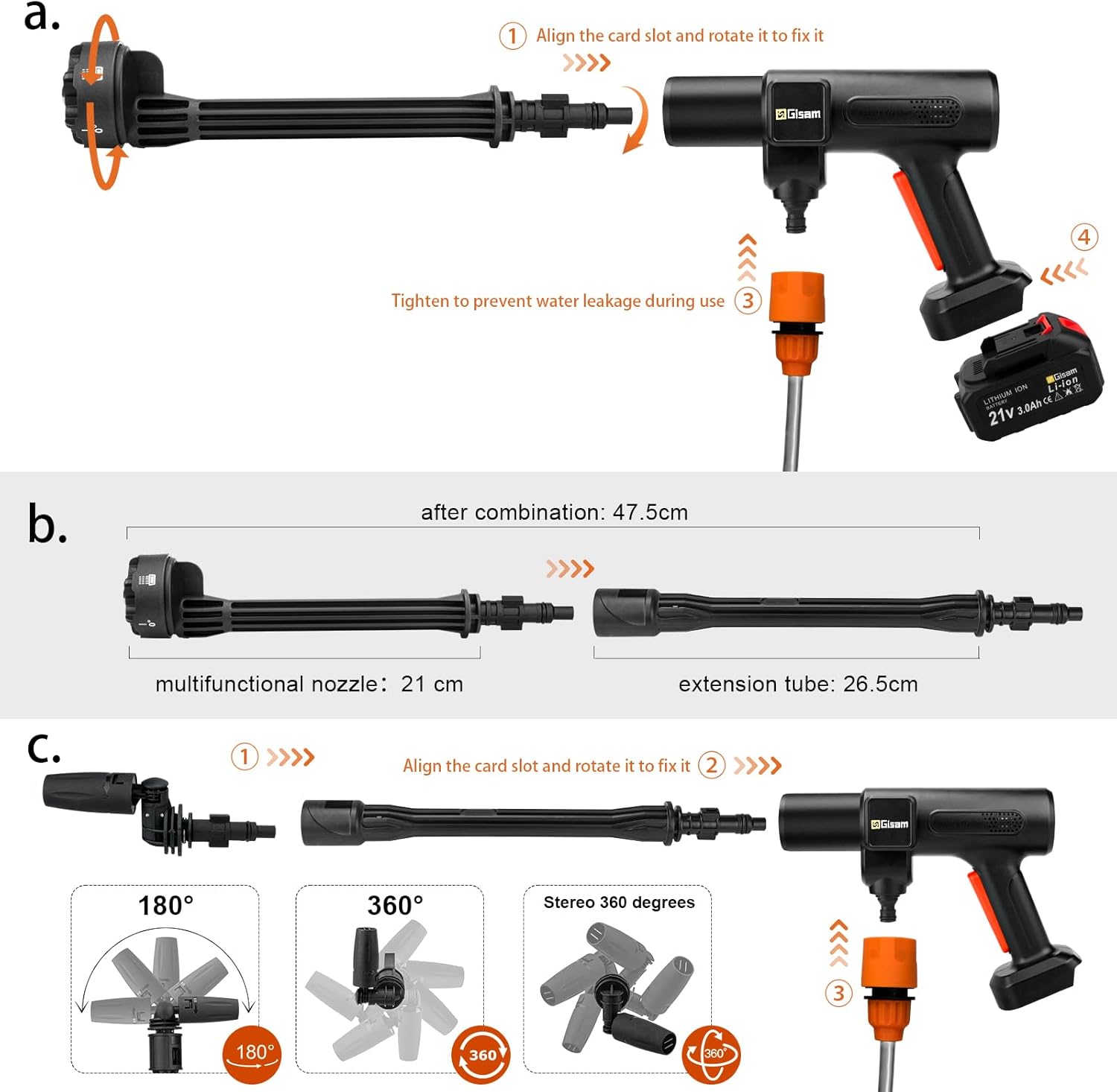 👨🔧[Contenu de L’emballage et Garantie] – 1 x nettoyeur haute pression, 1 x 6 en 1 buse, 1 x buse pivotante, 1 x buse à mousse, 1 x perche d’extension, 1 x connecteur, 1 x 5M tuyau, 1 x filtre, 1 x manuel d’instruction, 1 x chargeur, 2 x batteries 3Ah, 1 x mallette de transport. Gisam offre une garantie de 12 mois et un service à la clientèle. Si vous avez des questions, vous pouvez nous contacter par le biais de « Contact Seller » sur la page de commande.