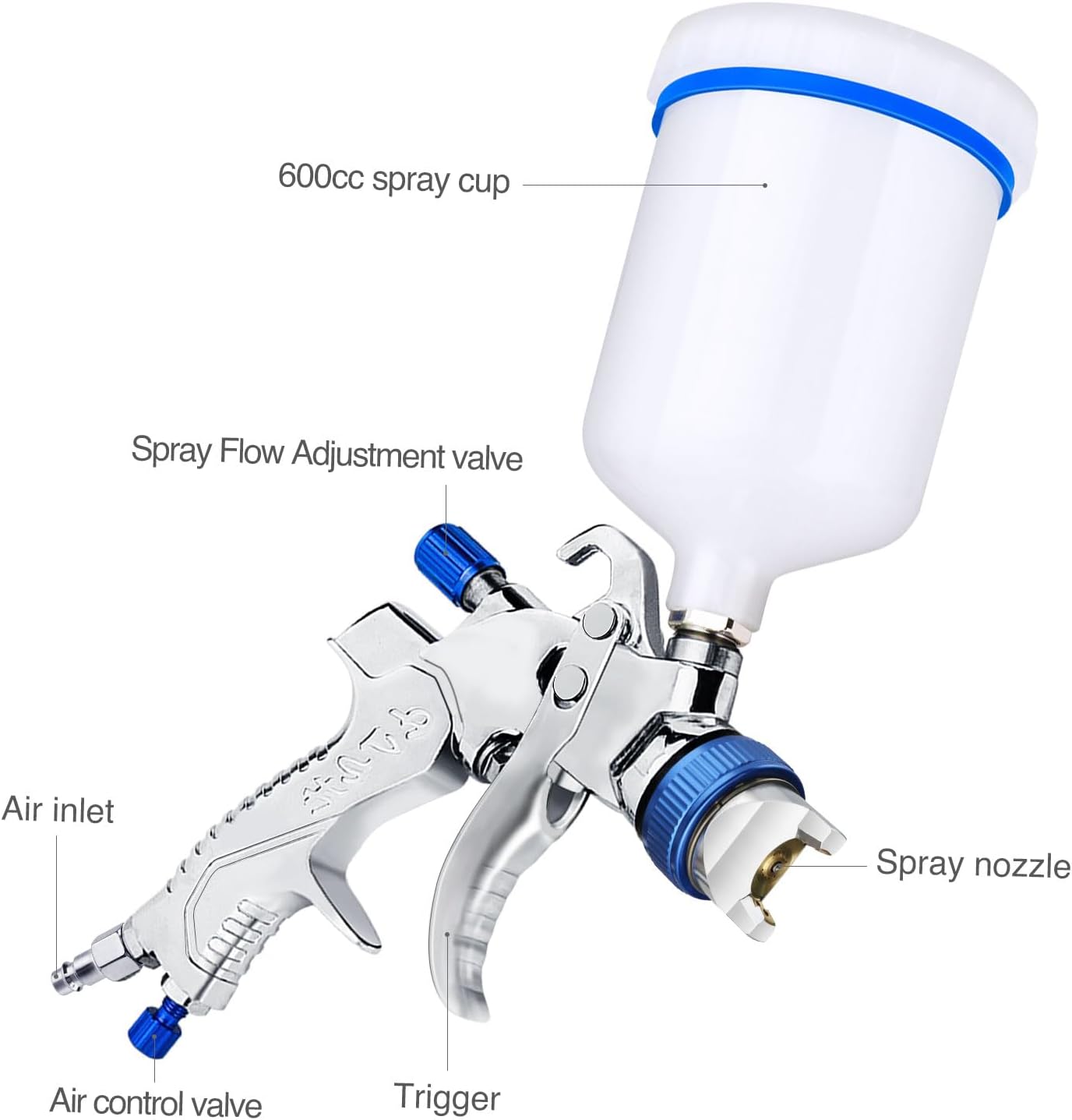 – Avec le gobelet en plastique de 600 ml, vous pouvez regarder le liquide de peinture et gagner du temps lors du chargement.