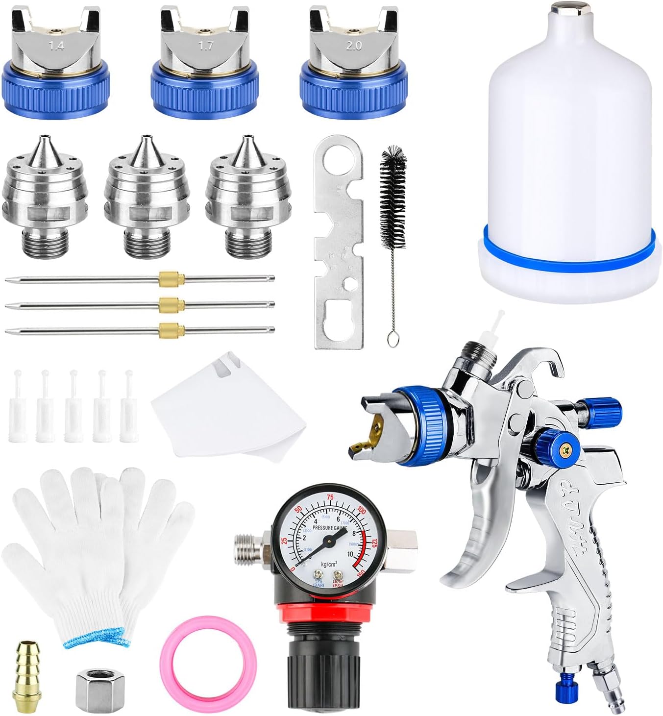 Haute efficacité : ce kit de pistolet à peinture est équipé de 3 buses (1,4/1,7/2,0 mm), et la taille de buse requise peut être sélectionnée en fonction de différents besoins de travail ; en outre, il est équipé de 5 entonnoirs en papier et de 5 cartouches filtrantes qui peuvent être utilisées pour filtrer la peinture et éviter que les restes de particules ne bloquent le pistolet ; 1 grande clé pour plus de facilité Démontage et remplacement de Buses