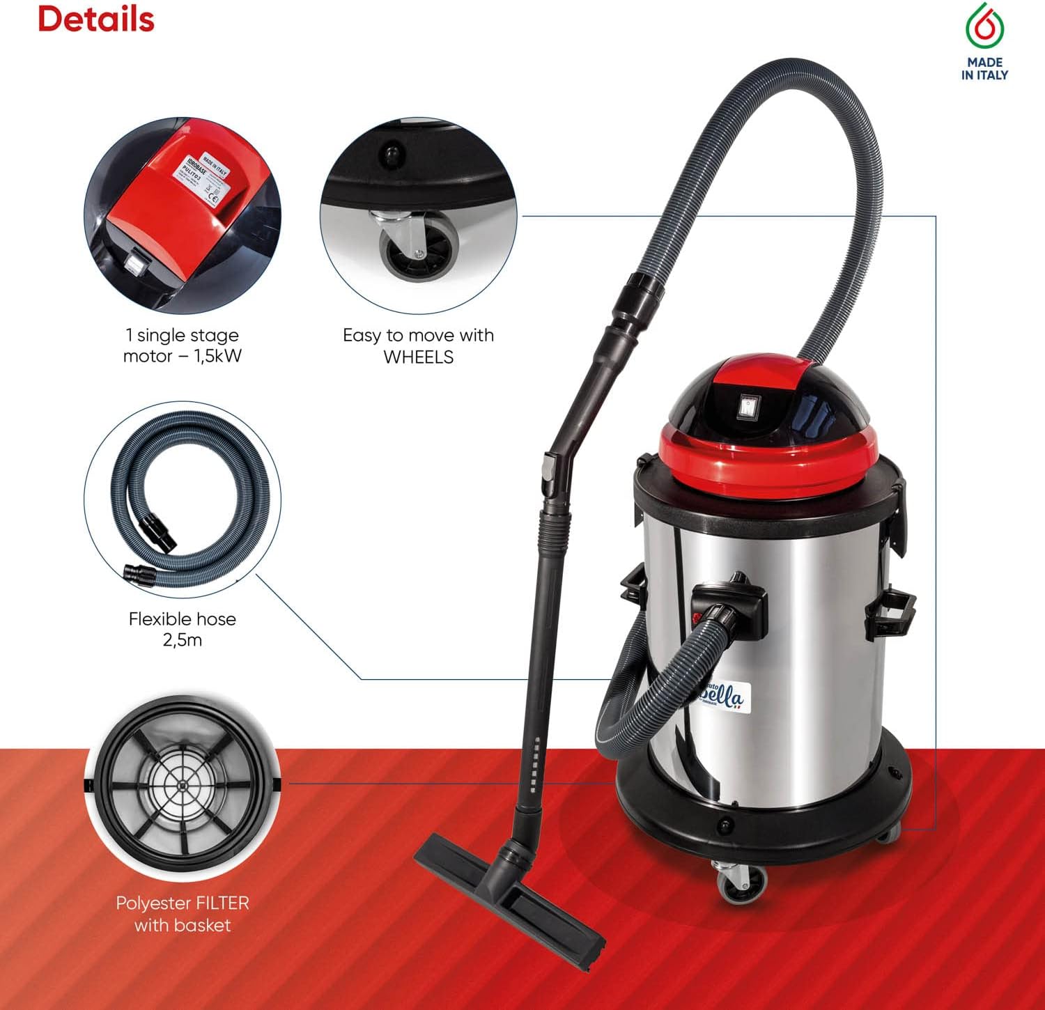 Aspire les solides et liquides dans la maison, le garage et la cave, ainsi que dans un entrepôt traversé par des personnes et des demi : Pulito est une poubelle professionnelle qui vous permet de nettoyer rapidement et sans vous soucier de séparer les matériaux pour les enlever.