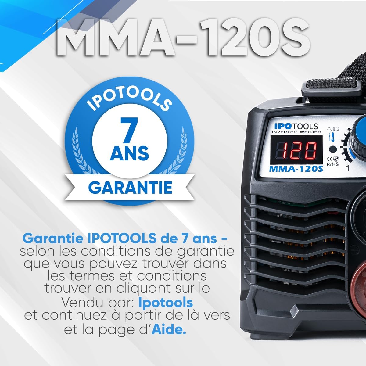 ▲ QUALITÉ GARANTIE AVEC IPOTOOLS : Avec une garantie de 7 ans sur le poste à souder E MMA 120S, vous bénéficiez d’un produit qui fait référence en termes de fiabilité et de satisfaction client. Pour connaître les conditions de garantie détaillées, il vous suffit de cliquer sur le nom du vendeur « Ipotools » et de vous rendre dans la rubrique « Conditions générales et aide » où vous trouverez toutes les informations de manière transparente et conviviale