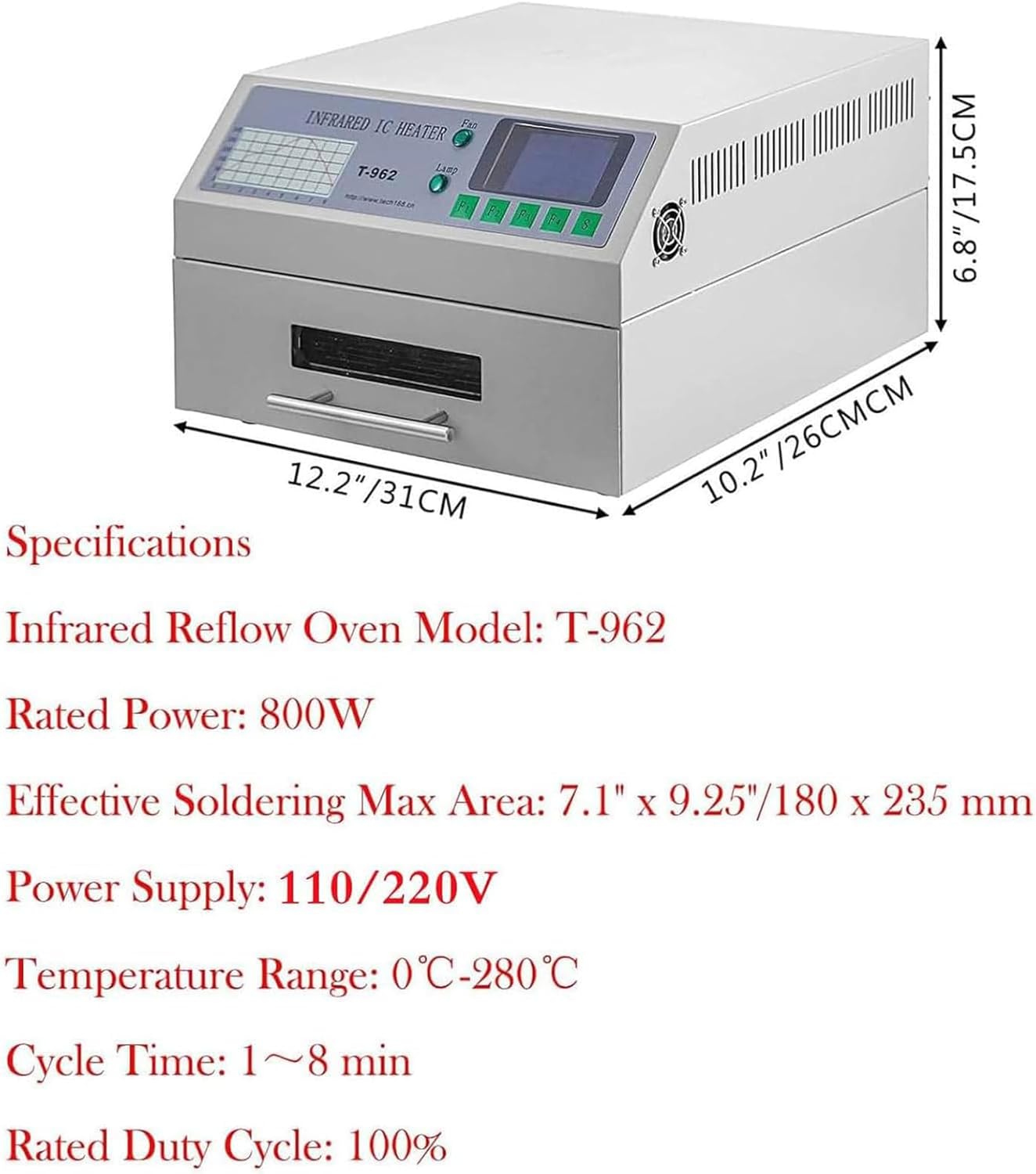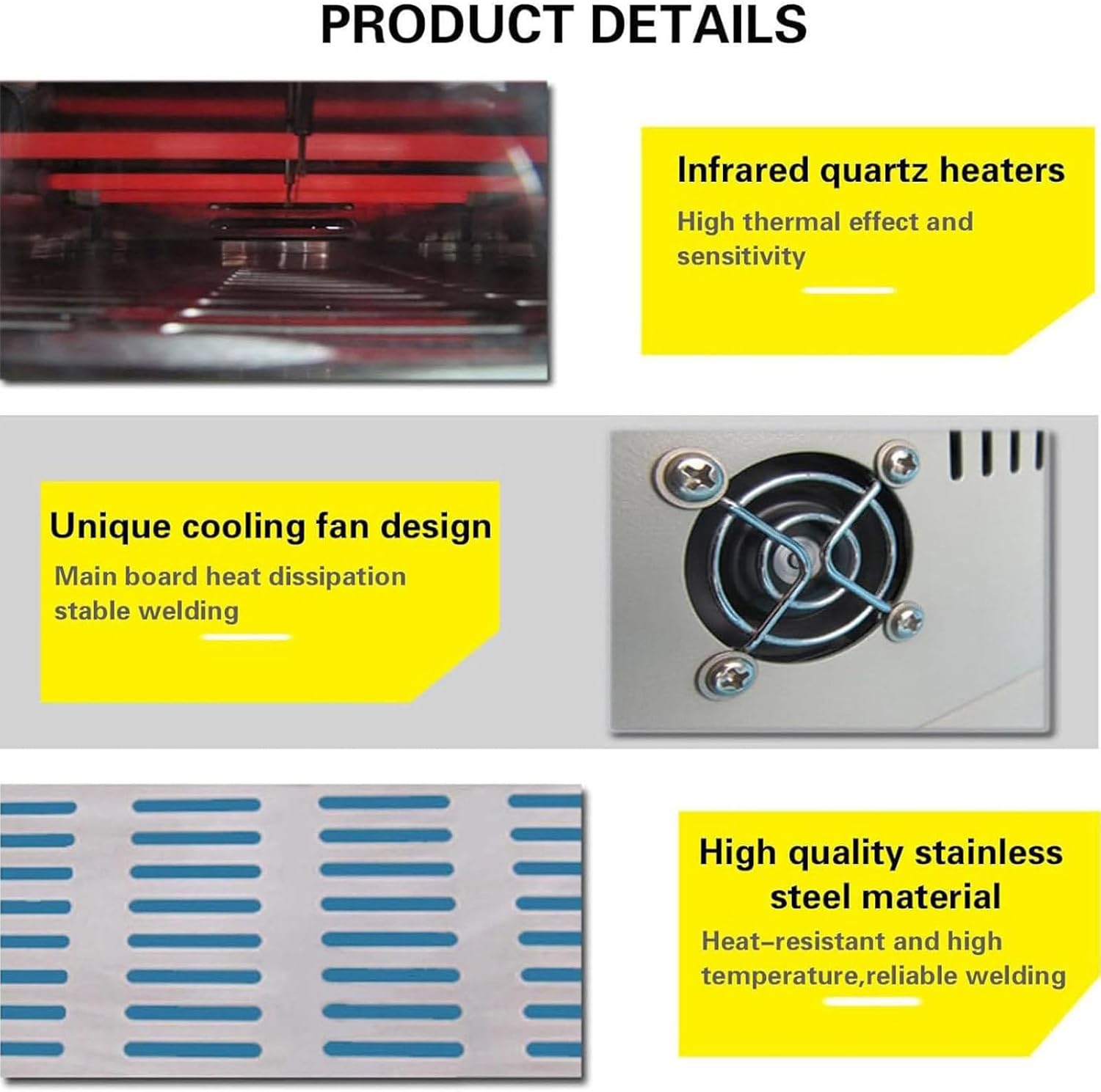 Multifonction : ce four de refusion peut souder des cartes PCB simples et doubles sous diverses formes d’emballage. Convient pour un tuyau d’échappement de Φ110 mm