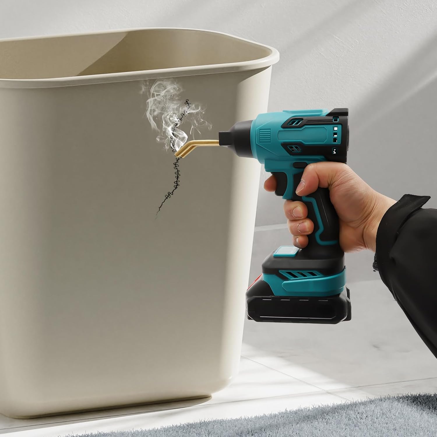 【Garantie de sécurité】- Le produit est équipé d’un interrupteur et d’un déclencheur, lorsque vous utilisez le produit, vous devez appuyer sur l’interrupteur et le déclencheur en même temps, ce qui peut bien éviter les blessures causées par un contact accidentel. Les trous de sortie de chaleur permettent à la chaleur de se dissiper rapidement dans le temps afin d’éviter la surchauffe pendant le travail.