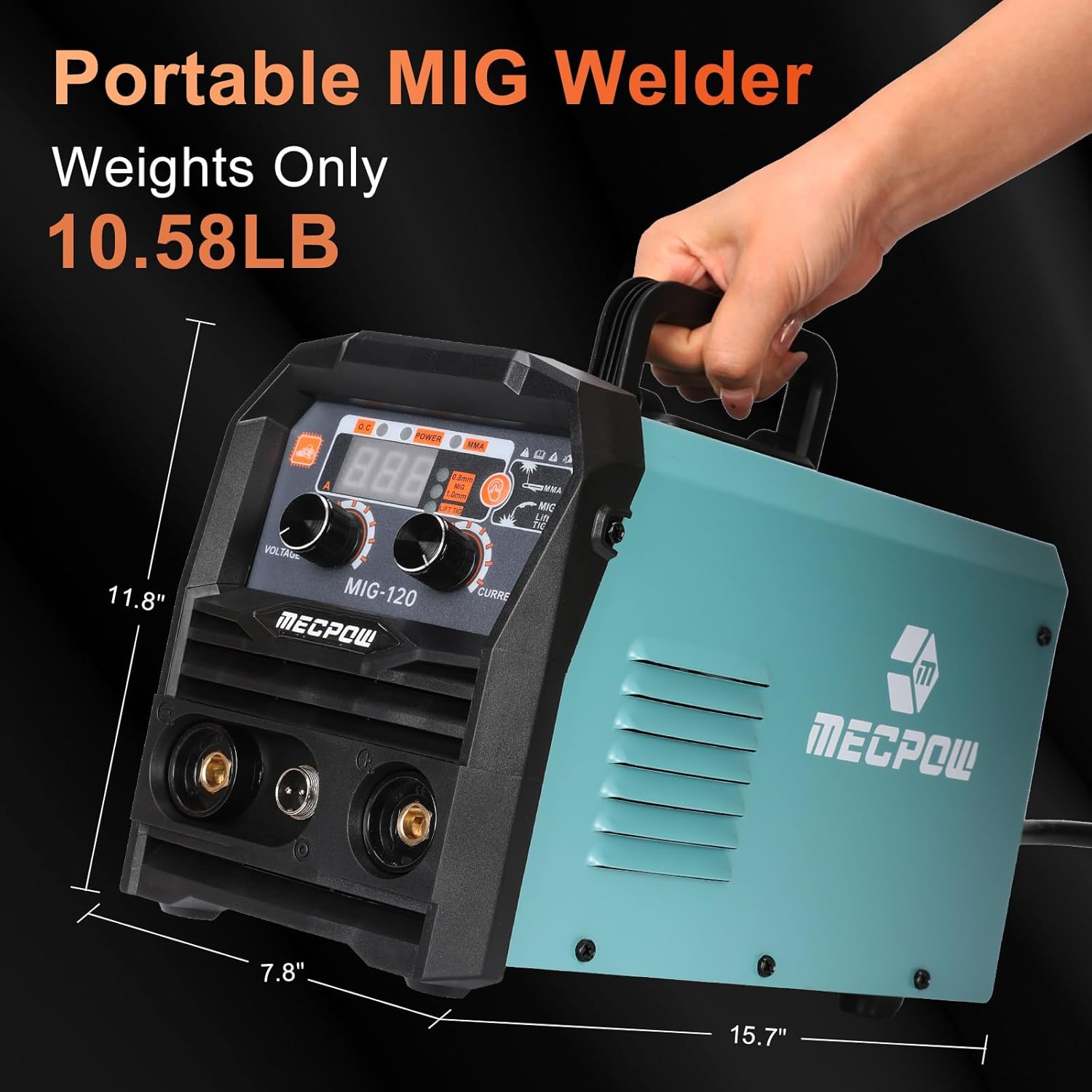 Puissance Puissante & Contrôle Synergique: Notre soudeuse MIG délivre une puissance robuste de 120 ampères, ce qui en fait idéal pour souder des diamètres de fil de 0,02 à 0,04 pouces et des plaques d’acier de 0,9 à 4,0 mm d’épaisseur. Pesant seulement 10,58 livres, cette machine de soudage légère est parfaite pour la portabilité. La fonction d’ajustement automatique de la tension se synchronise avec la vitesse d’avance du fil, garantissant un soudage fluide et efficace à chaque fois.