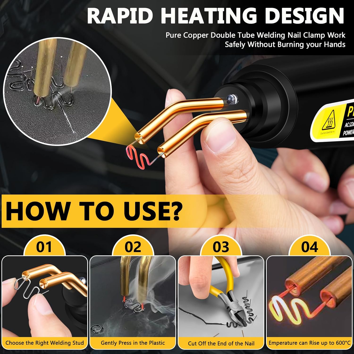 ✅ 80 WSOUDAGE PLASTIQUE MACHINE : La machine à souder le plastique 80 W peut réparer, souder et renforcer la plupart des pièces en plastique fissurées et endommagées, restaurer les pièces cassées, prolonger sa durée de vie, y compris le pare-chocs de voiture, le tableau de bord, l’anneau en plastique, le radiateur, les ailes, les spoilers, les poignées. , phares, bateaux, poubelles, dispositif plastique voiture et moto, livraisons plastiques quotidiennes, etc.