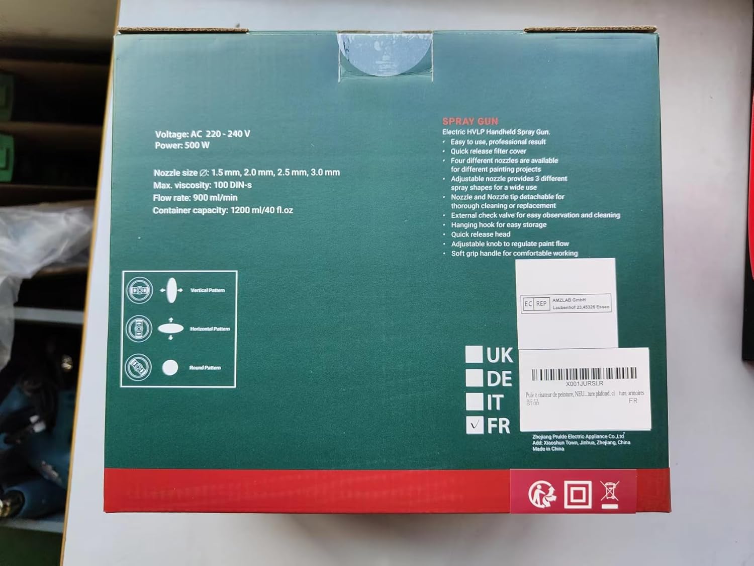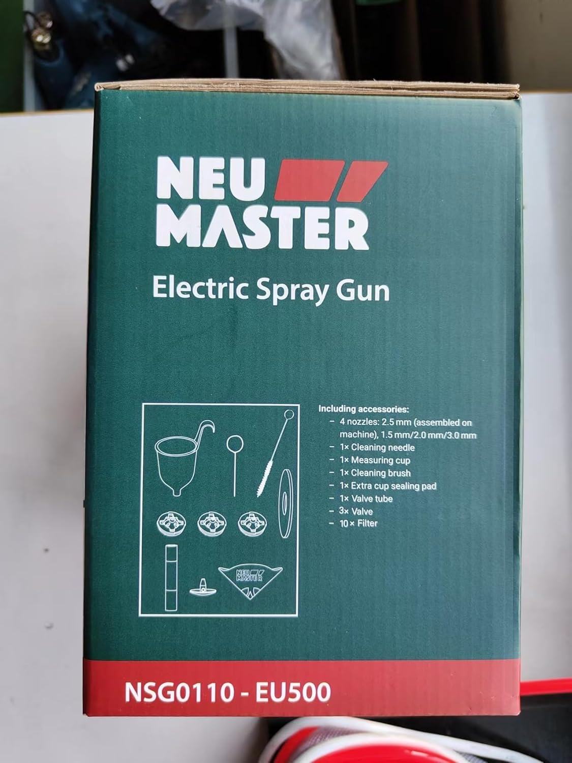 Contenu de la Livraison : 1* pulvérisateur de peinture 500 W. 4 * remplacer les buses,1* tasse de viscosité,1 * brosse de nettoyage,1 * aiguille de nettoyage,1 * manuel d’utilisation