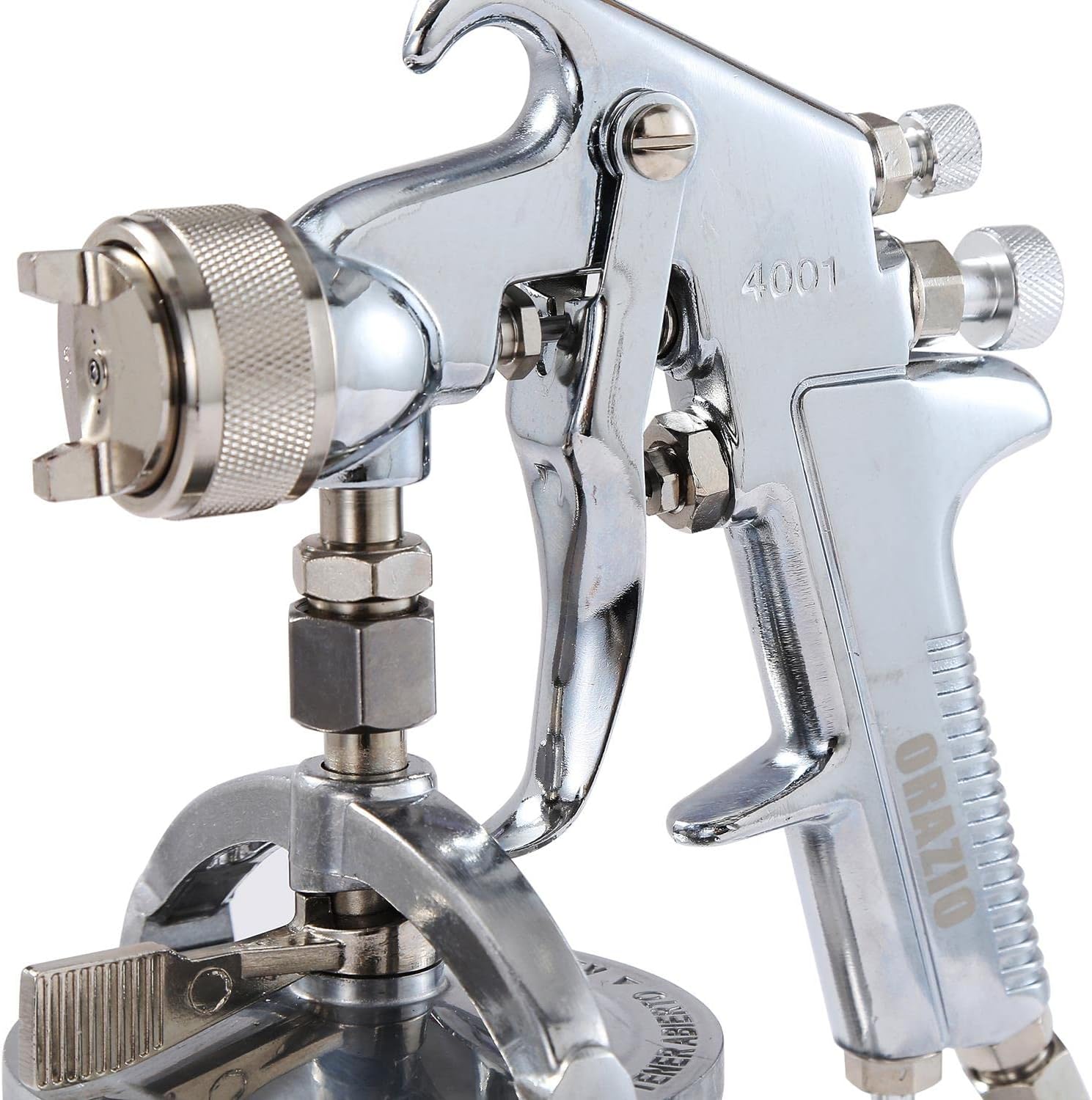 Pistolet à peinture haute pression avec 3 boutons de réglage pour contrôler la peinture Distribution. Coupelle en aluminium avec rebord inférieur pour haute pression Capacité du réservoir : 1000cc Diamètre de la buse : 1,8 mm Pression de fonctionnement : 3-4 Bars Consommation d’air : 5-8CFM Taille du colis : 24 x 16,5 x 15 cm Poids : 1,278 kg