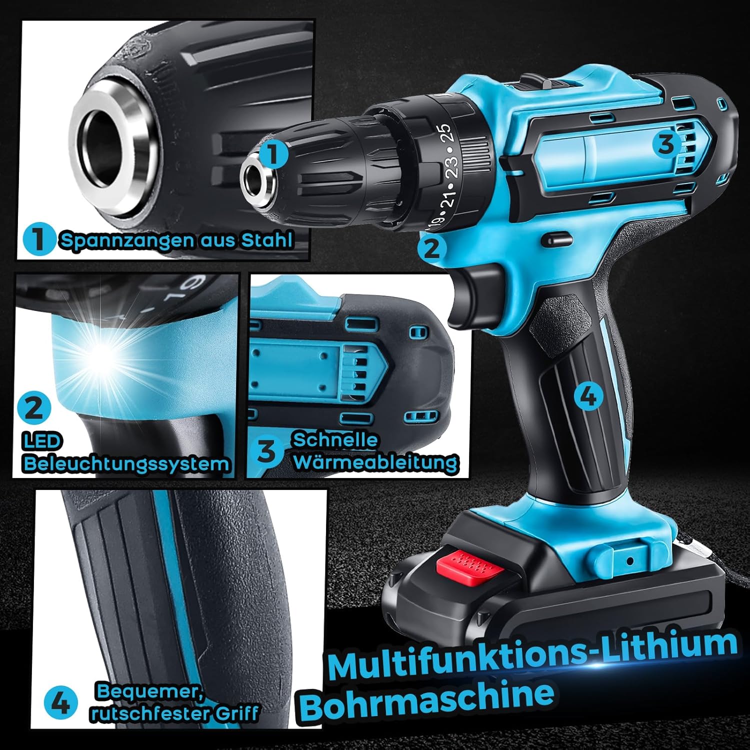 【Ensemble de perceuses sans fil 21 V】 : laissez le tournevis à main traditionnel derrière vous ! Ce puissant tournevis sans fil dépasse les limites des tournevis traditionnels. Avec lui, vous pouvez facilement serrer des vis, installer facilement des meubles, percer des trous dans le bois et le métal.