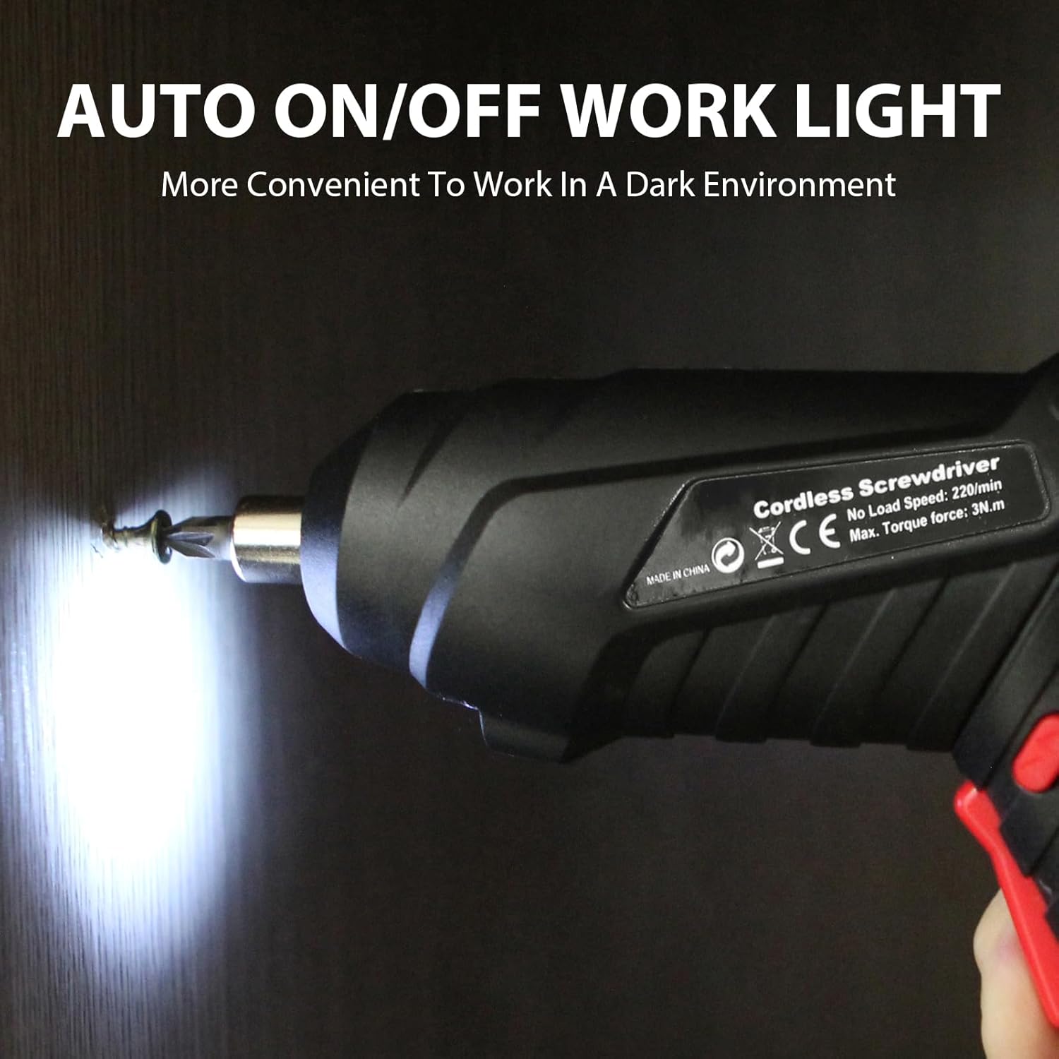 💡【LED ÉCLAIRAGE ET USB CHARGEMENT】 Le visseuse sans fil est alimenté par une batterie lithium-ion 3,6 V, 1,3 Ah. Le câble de charge Micro USB convient à différents ports USB et le temps de charge est de 2 à 5 heures.La lumière LED avant convient aux environnements sombres ou aux coins sombres, et peut fournir une puissance forte et constante et une longue durée de vie de la batterie.