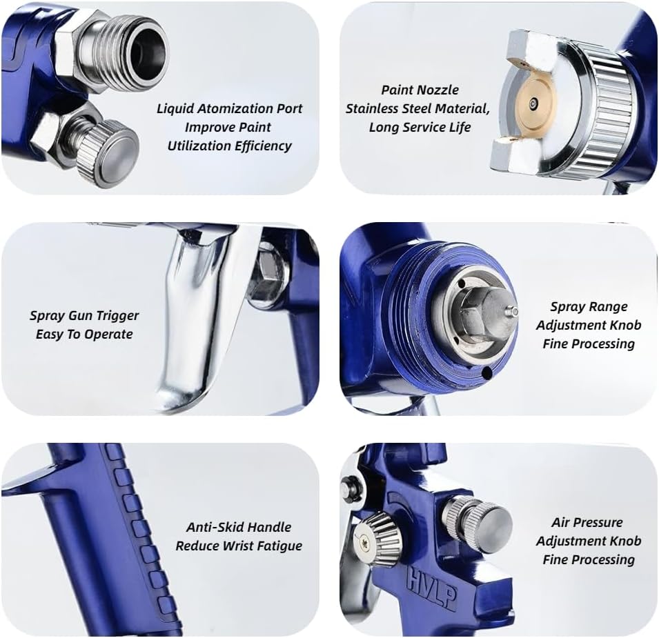 Fonctionnalités:Ce pistolet est utilisé pour peindre des automobiles, des meubles, des jouets, des instruments, etc.Poids léger, et très bon effet d’atomisationTraitement de surface lisse, à l’aiseLe pot est transparent, vous pouvez voir clairement la capacité liquide du potIl convient également au dessin artistique, à la peinture murale, aux travaux manuels, au modélisme