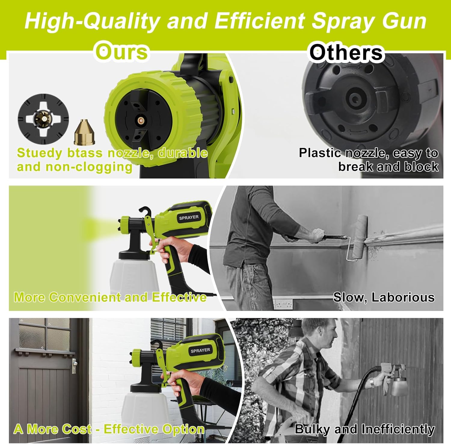 1.4 Buses et 3 Modèles de Pulvérisation : Le pistolet a peinture RAZIOL 700W est équipé de 4 tailles de buses (1mm, 1.5mm, 2mm, 3.0mm), le rendant polyvalent pour différents projets de peinture tels que les meubles, les clôtures, les armoires, les portes, les murs, et les tables et chaises de jardin. Il dispose également de modèles de pulvérisation horizontale, verticale et circulaire, élargissant ainsi son champ d’application
