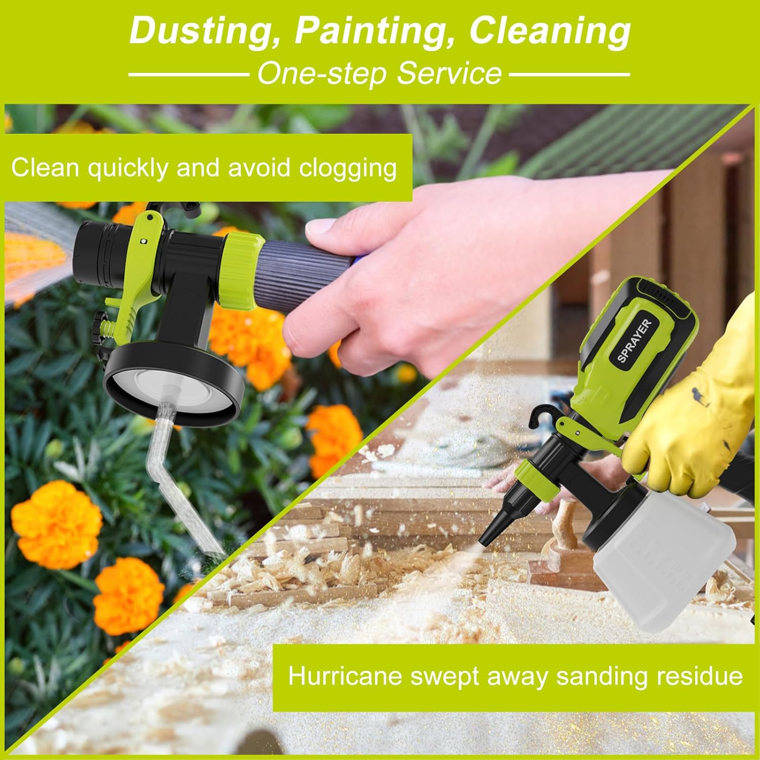 2.Fonctions de Soufflage et de Nettoyage Uniques : Avant la pulvérisation, l’embout de soufflage de poussière du pistolet peinture peut être utilisé pour souffler la poussière et les débris de surface, assurant ainsi un effet de pulvérisation uniforme. Après la pulvérisation, en connectant le connecteur de nettoyage au robinet, il est possible de nettoyer la peinture résiduelle à l’intérieur du tuyau, prévenant ainsi efficacement les problèmes de colmatage