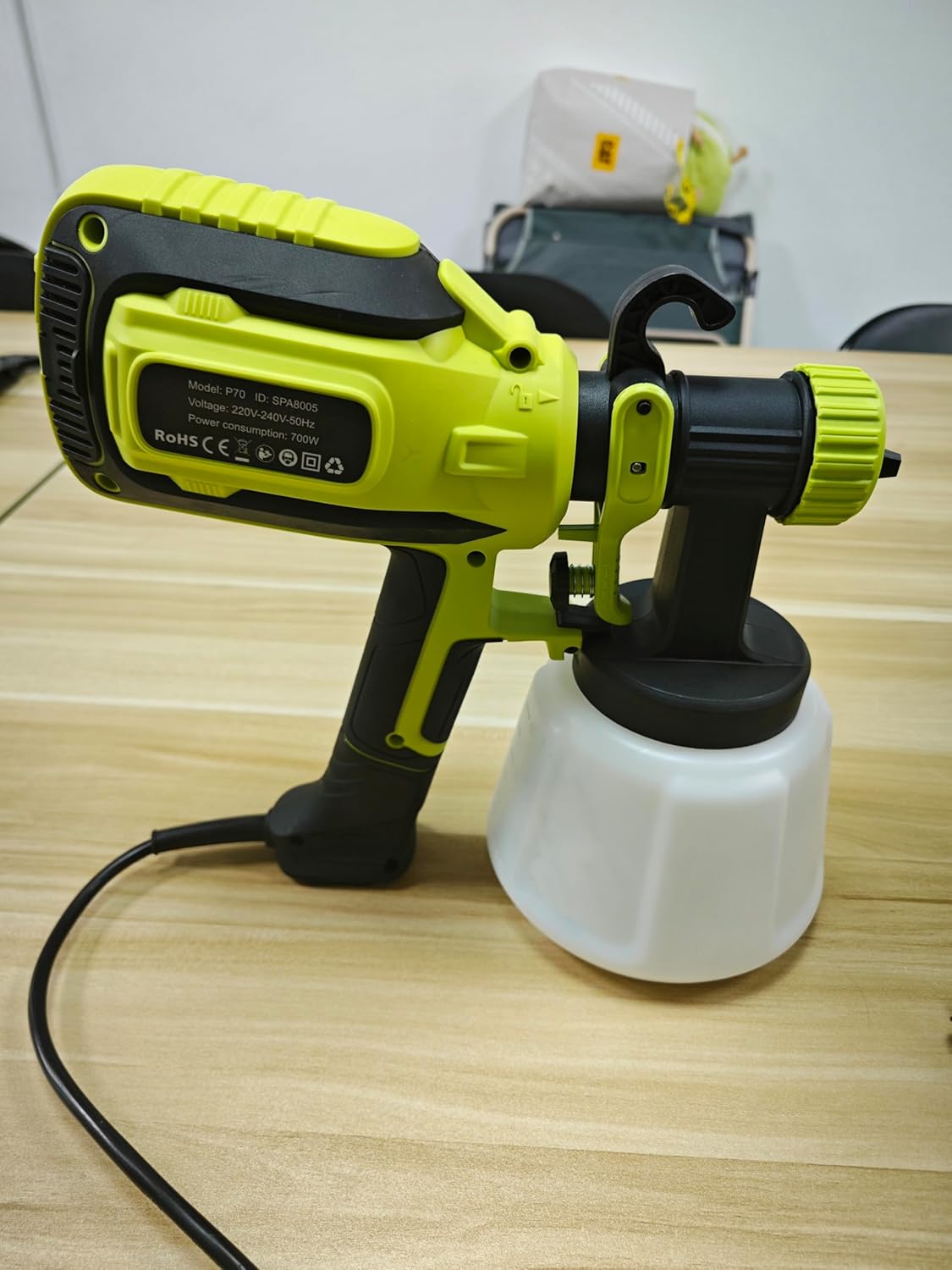 5.Contrôle de Débit Réglable : La sortie de peinture peut être précisément contrôlée en ajustant le bouton de contrôle de débit, répondant ainsi aux divers besoins du projet. Contrôler raisonnablement le débit de peinture en fonction des différentes exigences d’effet de pulvérisation peut permettre d’obtenir de meilleurs résultats et de prévenir le gaspillage de peinture. Il convient à différents projets, permettant une pulvérisation facile dans des zones difficiles d’accès comme les rouleaux