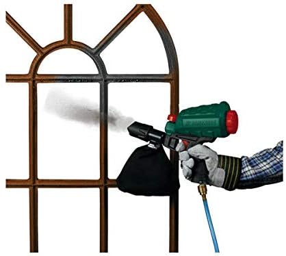 Accessoires inclus : 1 sac de collecte, 1 buse de connexion, 1 accessoire pour sablage de surfaces, points, bords et coins intérieurs respectivement et 2 kg de matériau de grenaillage. Compresseur recommandé à partir d’un volume de chaudière de 50 l. Tuyau d’air comprimé non inclus. Emballage neuf fabriqué en Allemagne. Haute qualité. N’importe pas en Asie. Label de qualité TUV GS allemand