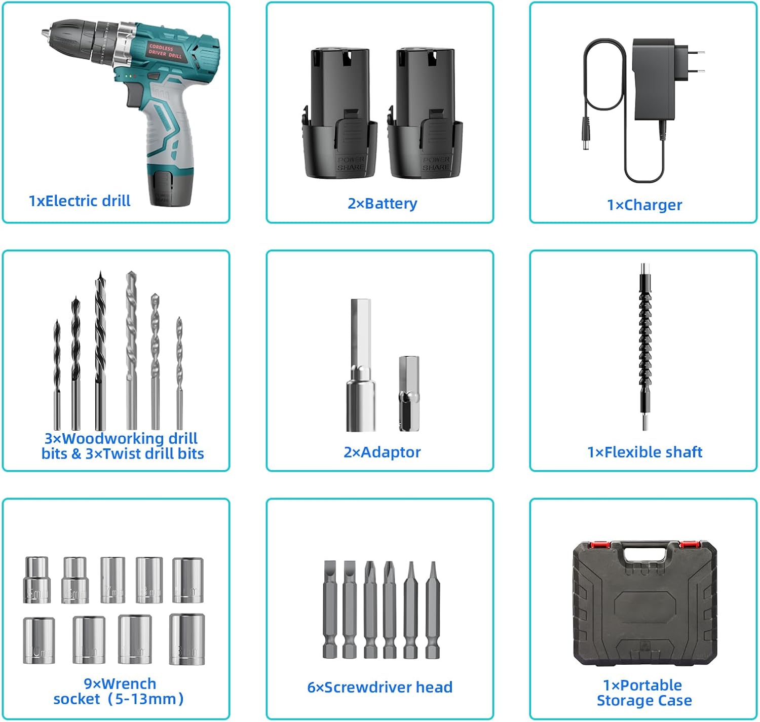 【Polyvalent et Multifonction】 Que ce soit pour une rénovation domiciliaire ou une tâche professionnelle, ce Perceuse Visseuse Sans Fil 12V est votre compagnon fiable. Cette perceuse électrique gère sans effort différents matériaux, du bois au métal, et même le béton, avec facilité.