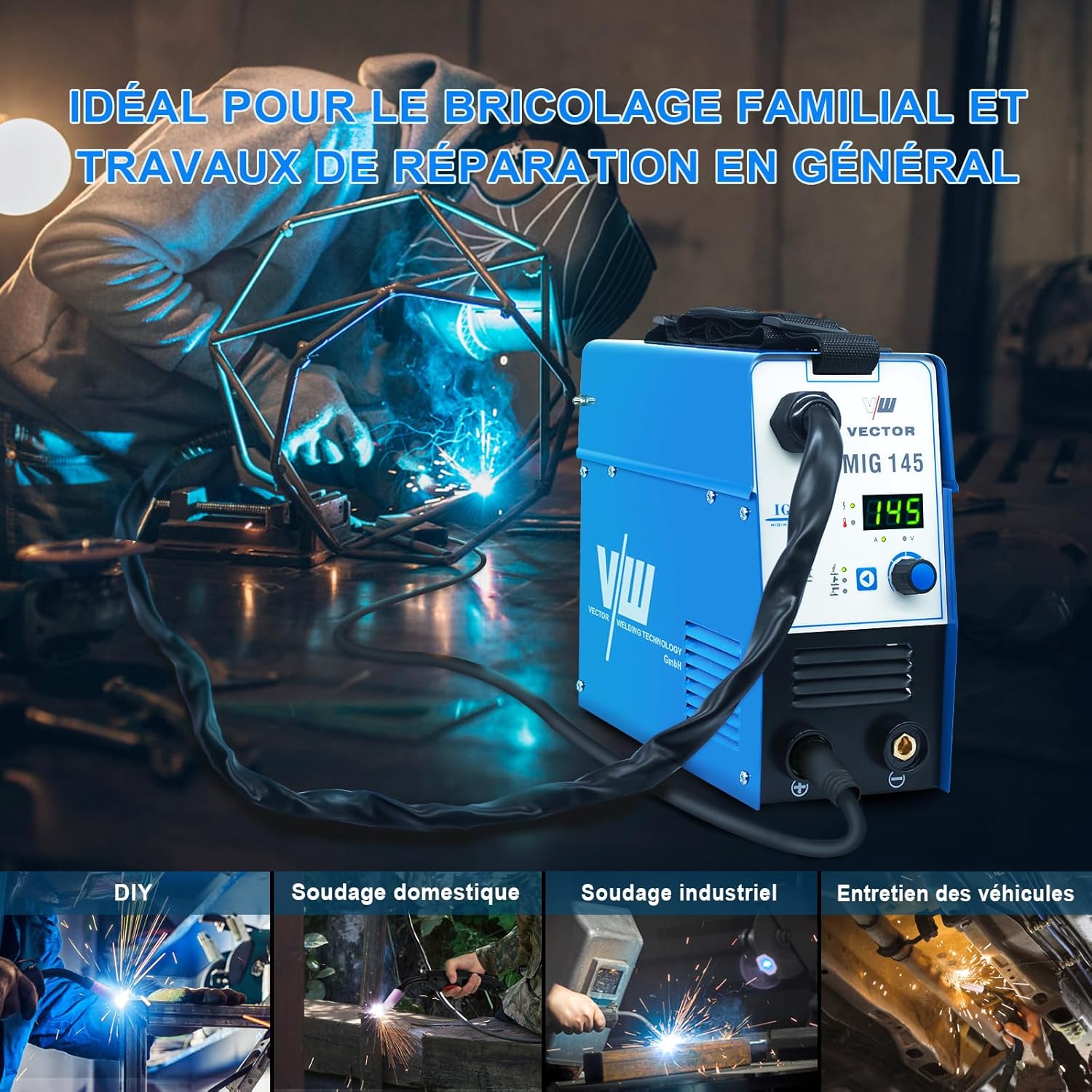 ✅ La machine à souder à fil fourré Mig 145 impressionne par ses puissants 145 ampères dans le processus de soudage. La fonction de soudage à l’électrode a une intensité de courant de 160 ampères. Vous pouvez également profiter d’un haut niveau de sécurité avec une protection contre la surchauffe intégrée et un affichage numérique.
