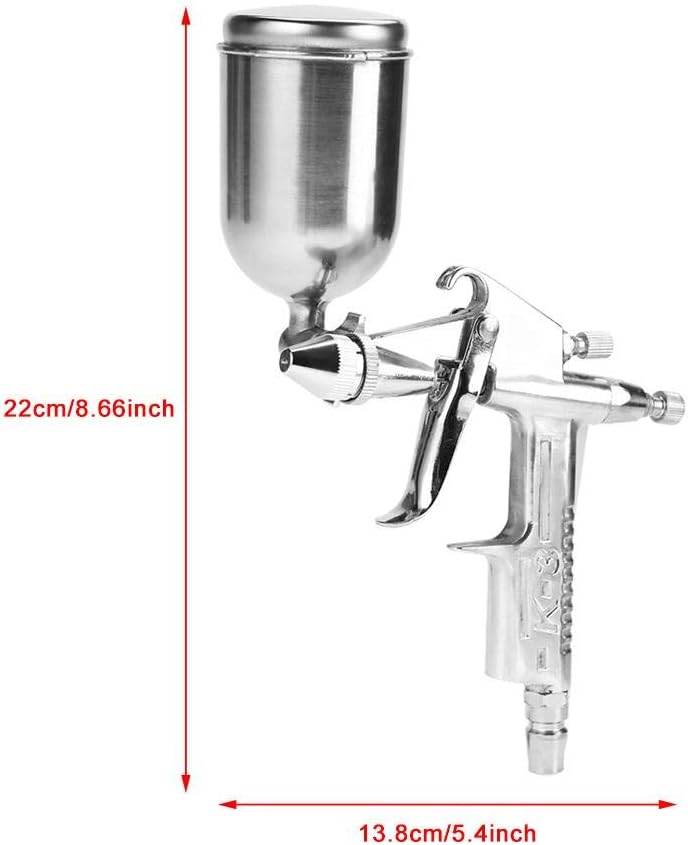 RÉGLAGE DE LA PRESSION D’AIR : Le pistolet de peinture est facile à utiliser, tourner la vis de réglage dans le sens des aiguilles d’une montre pour réduire le volume d’air, et dans le sens inverse des aiguilles d’une montre pour augmenter le volume d’air.